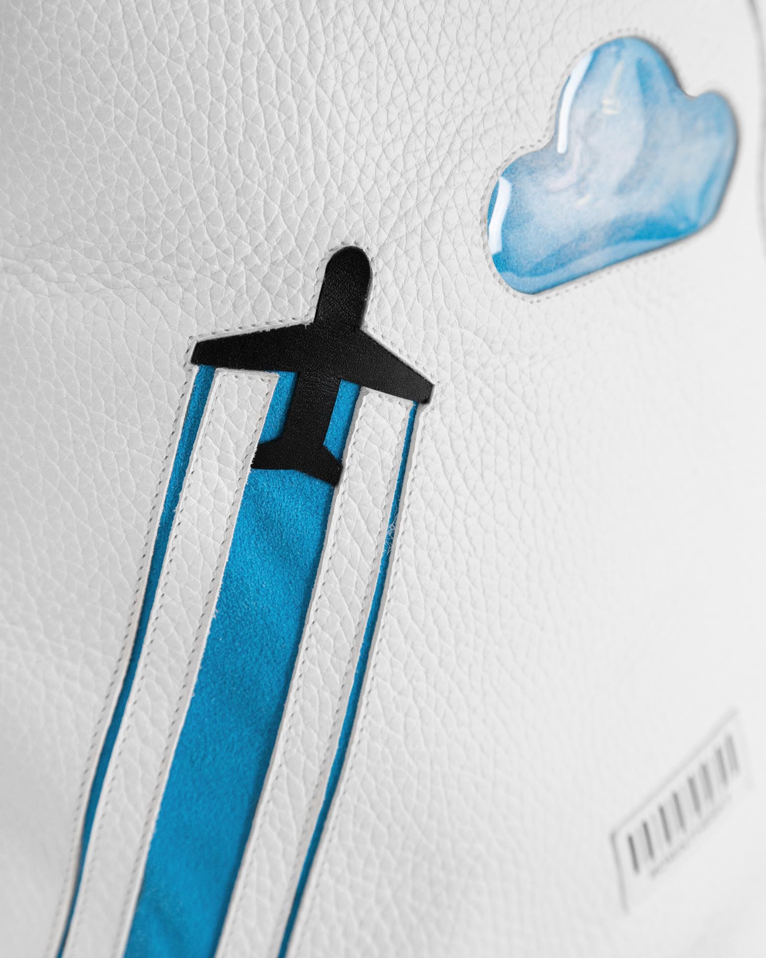 - Handfinished-Details: 2 Clouds in a custom-developed technique with filling (four layers, four materials); 1 airstripe in different materials and haptics; 1 printed barcode-patch sewn on; 1 sun implemented with a sparkling glitter foil using a special technique.