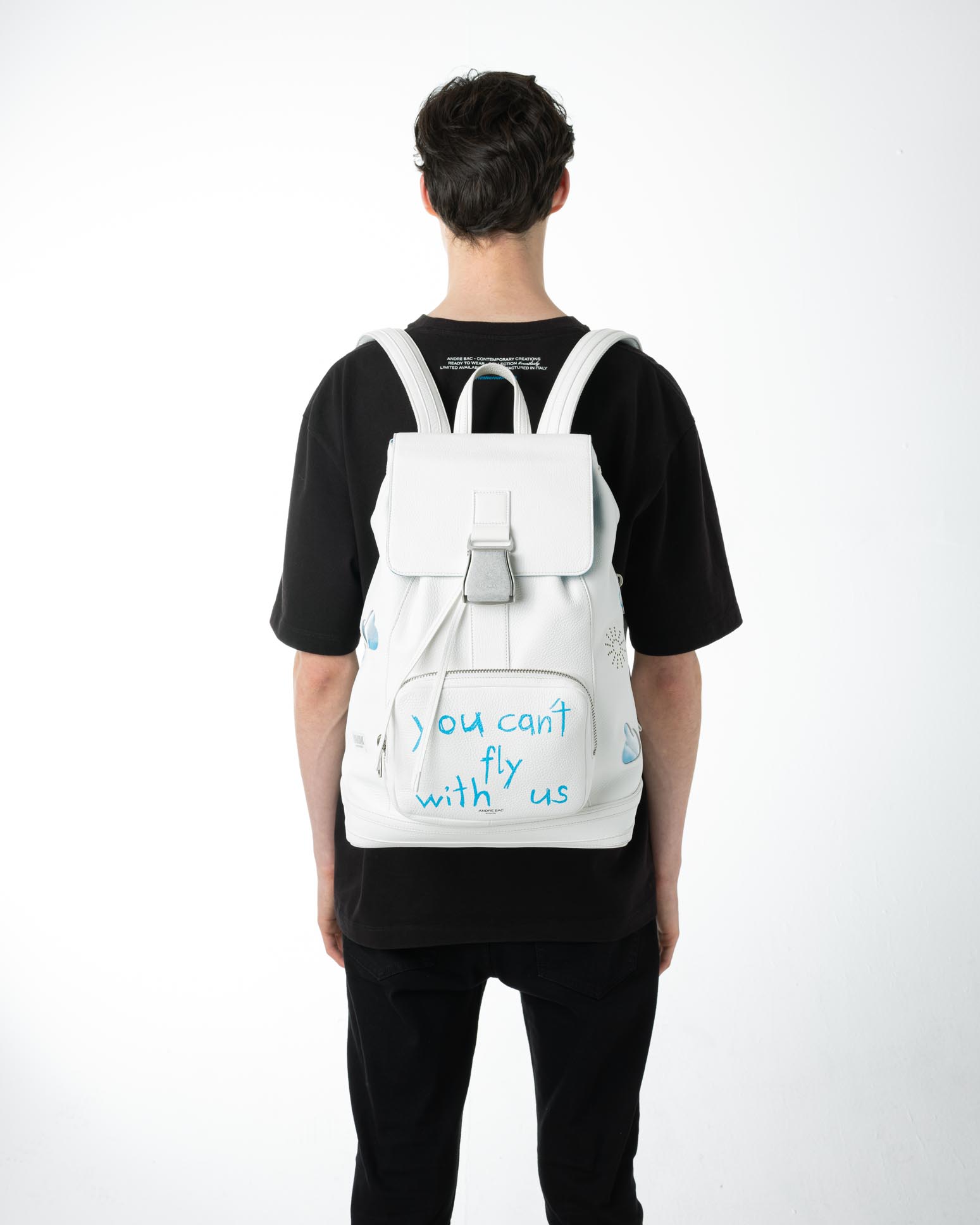 - Prints on the front pocket; big Logo print on the side; printed text on the back