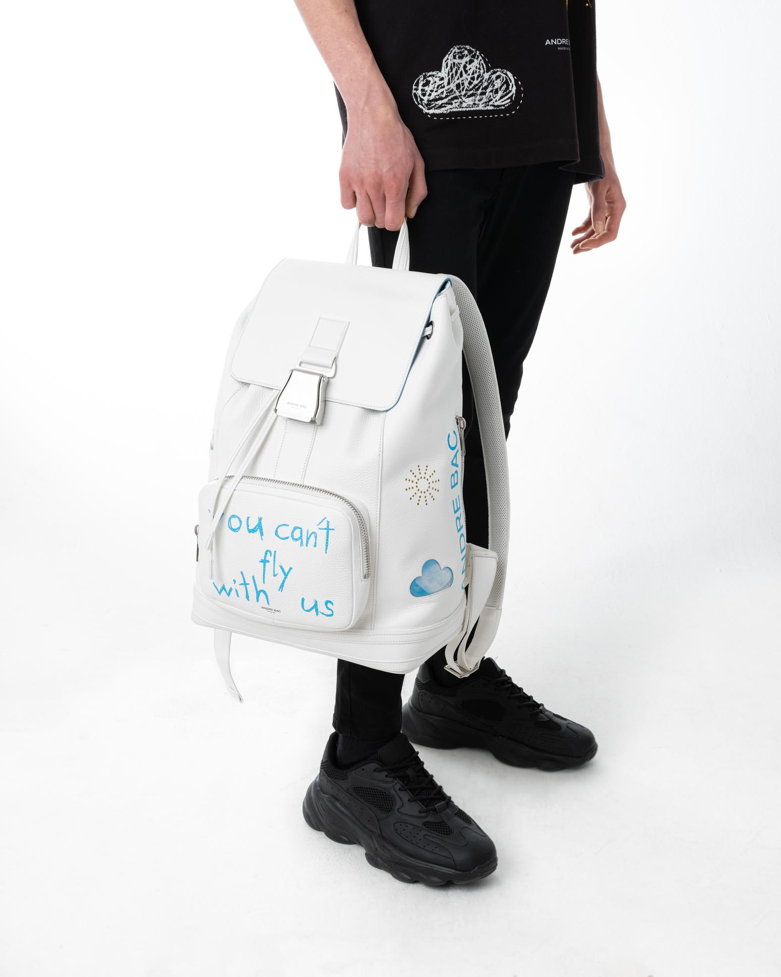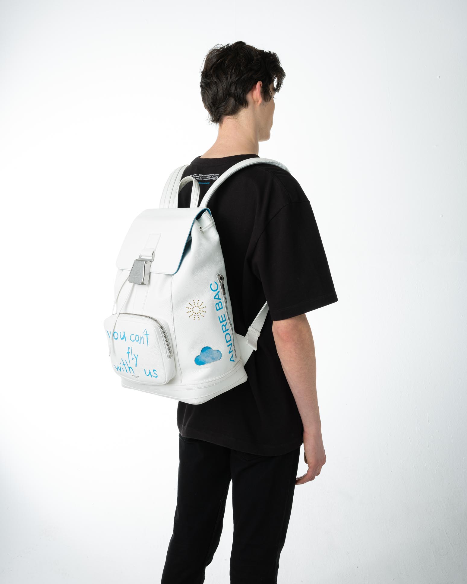 Grained calfskin backpack with a variety of hand-finished details and decorative elements, made from unusual and unique materials. Featuring the signature AB flight belt buckle on the front. Limited availability. Crafted in Italy.